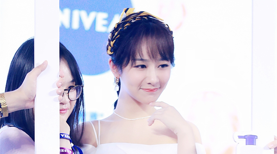 狀態(tài)滿分!關(guān)曉彤斜肩花朵裙秀香肩 對(duì)鏡甜笑十分搶鏡