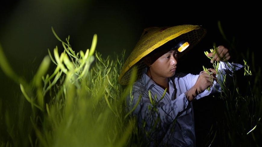 7月13日,在新疆精河縣托里鎮(zhèn)的一處枸杞種植園,村民在采收枸杞。