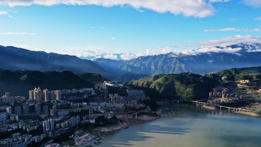7月2日拍攝的重慶巫山縣城一帶景象(無人機照片)。