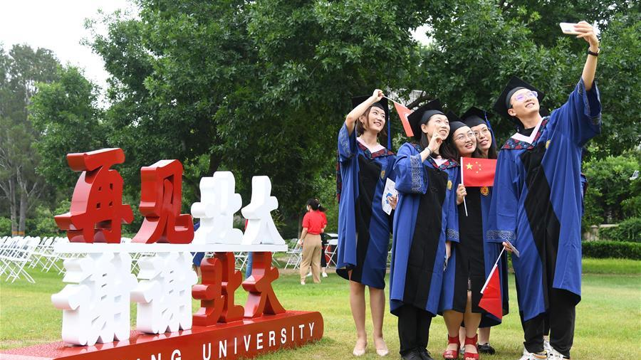 7月2日拍攝的北京大學2020年畢業(yè)典禮辦公樓西側(cè)廣場會場。