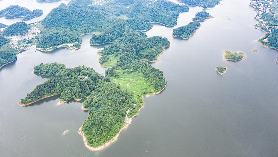 夏至時節(jié),貴州省清鎮(zhèn)市紅楓湖景區(qū)草木蒼翠,秀麗的湖光山色吸引不少游客前來游玩。