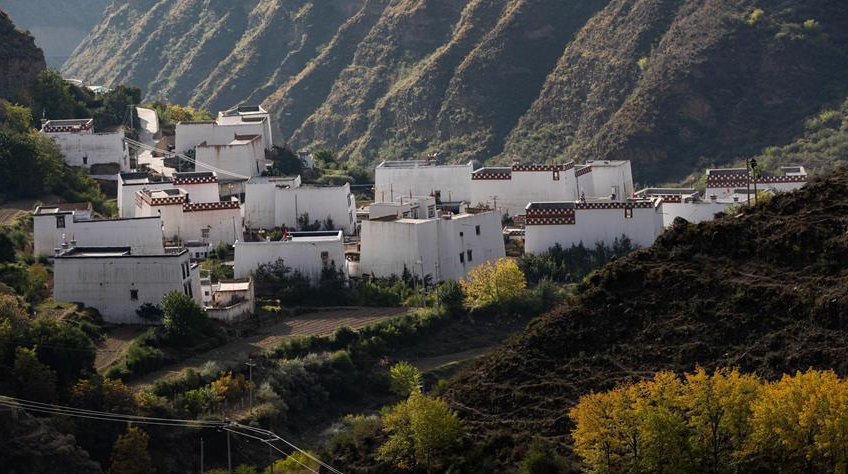 深秋時節(jié),四川省甘孜藏族自治州鄉(xiāng)城縣河谷地帶的民居像一顆顆白色珍珠點綴在色彩斑斕的田園中,形成一幅幅藏鄉(xiāng)田園畫卷。