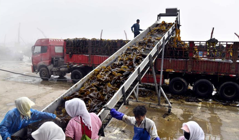近日,山東省榮成市迎來海帶收獲季。據(jù)悉,榮成市海帶養(yǎng)殖面積14.5萬畝,年產(chǎn)海帶43.3萬噸以上。