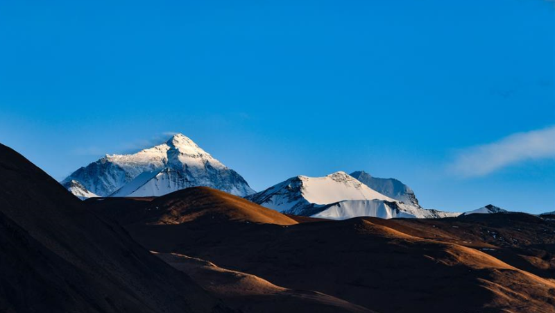 世界第一高峰珠穆朗瑪峰終年積雪,頂峰云霧繚繞,美不勝收。