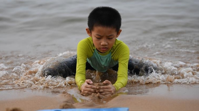 近日,??诔掷m(xù)高溫,不少市民前往海灘戲水消暑。