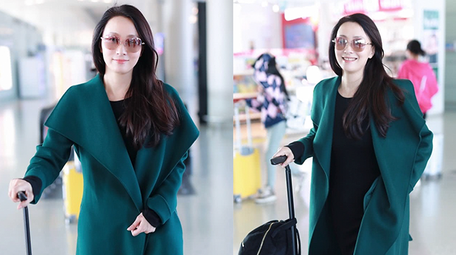 47歲陶虹獨自現(xiàn)身機場 穿綠大衣溫婉大方 面對鏡頭笑容親切