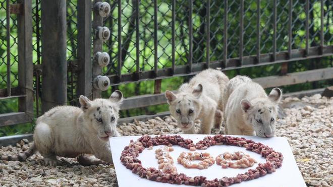 濟(jì)南野生動(dòng)物世界雪虎五胞胎慶百日