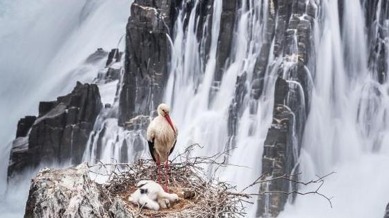 4月22日,一群天鵝在沽源縣閃電河國家級濕地公園的天鵝湖覓食。