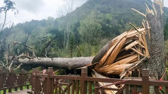 陜西漢中一450歲“夫妻古樹”被大風刮倒
