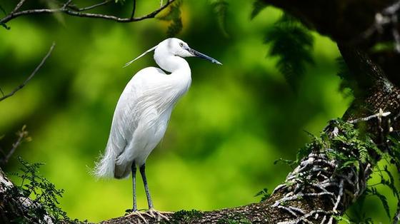 福州西湖公園墨池的湖心小島上,有4棵年歲久遠的重陽木樹。初春時節(jié),鳥兒在苔蘚遍布的樹枝嬉戲、停歇,引得市民駐足流連。