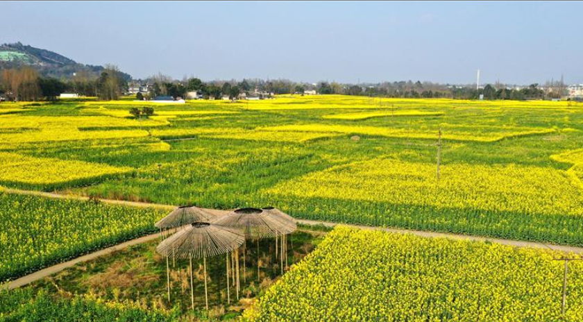 初春時節(jié),正值農(nóng)時。成都平原西部的大邑、崇州等縣市油菜長勢良好,一片生機(jī)盎然的景象。