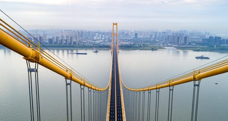 當日,長江上首座雙層公路大橋——武漢楊泗港長江大橋正式投入使用。楊泗港長江大橋全長4.13公里,主跨1700米,一跨過長江。