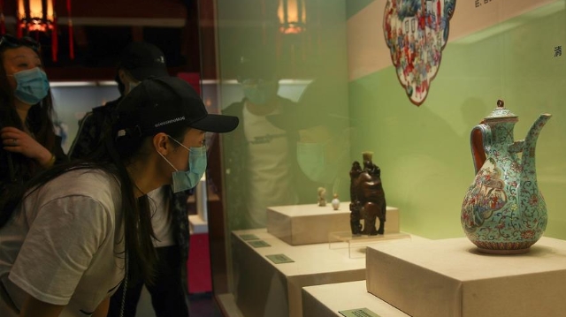 5月28日,觀眾在沈陽故宮博物院的“古趣童心——清宮文物中的兒童世界”展覽上參觀。