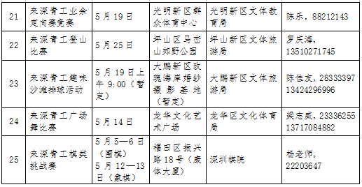 為便于更多青工了解、報(bào)名參與此次文體節(jié),活動(dòng)主辦及承辦單位不但將通過(guò)多媒體渠道廣泛傳播,還將在深圳市文體旅游局官方網(wǎng)站(http://www.szwtl.gov.cn/)、深圳數(shù)字文化館(https://www.szmassart.com/)、“深圳公共文化”微信公眾號(hào)、“深圳市文化館”微信公眾號(hào)陸續(xù)發(fā)布活動(dòng)各項(xiàng)信息。