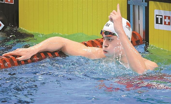昨日,在第18屆亞運(yùn)會(huì)男子200米個(gè)人混合泳決賽中,中國(guó)選手汪順后來(lái)居上,奪得冠軍。