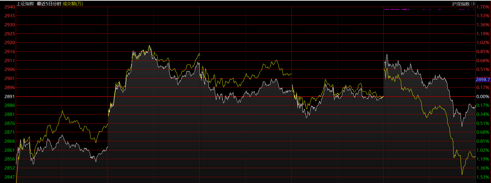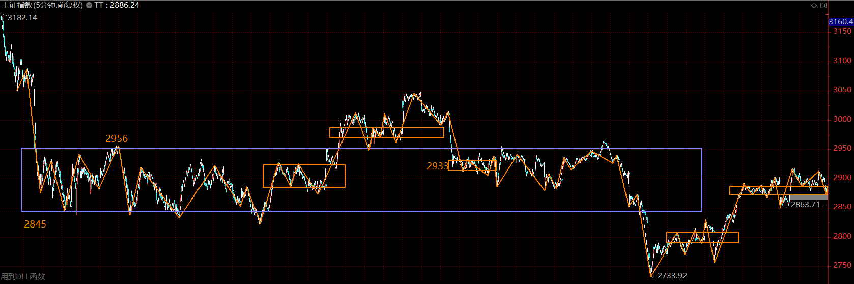 上證指數(shù)上周在這個(gè)位置做中樞擴(kuò)展,將五分鐘上漲的第二個(gè)中樞擴(kuò)展為三十分鐘級(jí)別的。這是強(qiáng)勢(shì)的一種表現(xiàn),市場(chǎng)在震蕩中消化拋壓。這里需關(guān)注大中樞的下軌2845點(diǎn),跌破后,可能會(huì)帶來(lái)指數(shù)的二次探底,這將是絕佳的加倉(cāng)點(diǎn)位,不跌破則市場(chǎng)隨時(shí)會(huì)上攻2950點(diǎn)。目前態(tài)勢(shì)下,應(yīng)以持倉(cāng)為主。