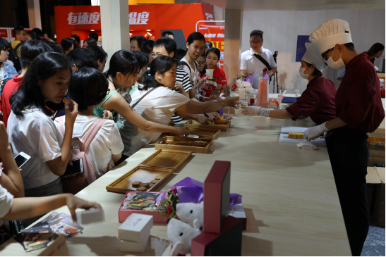 記者在快閃店的手工烘焙區(qū)看到了一塊塊手工鳳梨酥精心制作的全過程。隨著它的“出爐”,濃郁香味吸引來了不少市民圍觀。在試吃區(qū)里,市民品嘗后都紛紛贊不絕口,“好吃,真的好吃,餡料也很足!”除此之外,店內(nèi)還設(shè)置了愛的溫度、娃娃機(jī)、顏值打折AI人臉識(shí)別游戲等互動(dòng)活動(dòng),也吸引了眾多市民的熱情參與和圍觀。