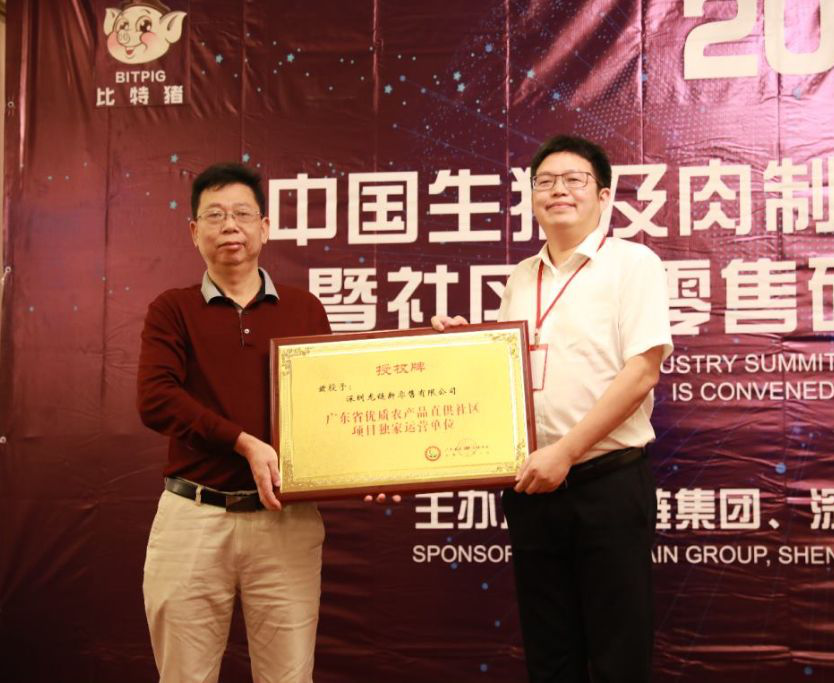 龍鏈集團董事局主席、川豬集團董事長、深圳龍鏈新零售有限公司董事長夏可,上臺接受了這項全廣東省獨家的授權(quán)牌,并發(fā)表感言:這既是廣東省委、省政府對深圳龍鏈新零售有限公司以區(qū)塊鏈、人工智能、物聯(lián)網(wǎng)等領(lǐng)域的高新科技,打造形成了生豬及肉制品等高品質(zhì)“菜籃子工程”系列產(chǎn)品的規(guī)?;?、專業(yè)化產(chǎn)供銷及商業(yè)平臺服務(wù)“一條龍”的肯定,也是一種鞭策——鞭策龍鏈人將自創(chuàng)的“比特豬”品牌穩(wěn)固為中國高端健康食品結(jié)合社區(qū)新零售領(lǐng)域的第一品牌,并不斷推動市民能夠以更便捷的方式與更良好的消費體驗,獲得高品質(zhì)的放心食品。