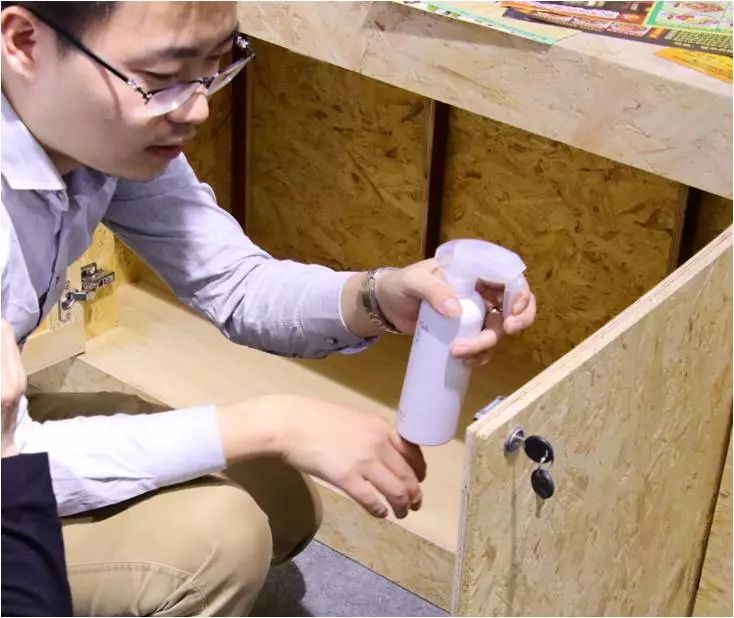 還為各展區(qū)贈送了尤佳環(huán)境自主研制的YUGA凈源除醛劑,各參展單位對自己展區(qū)內(nèi)的展柜進(jìn)行了除醛處理。