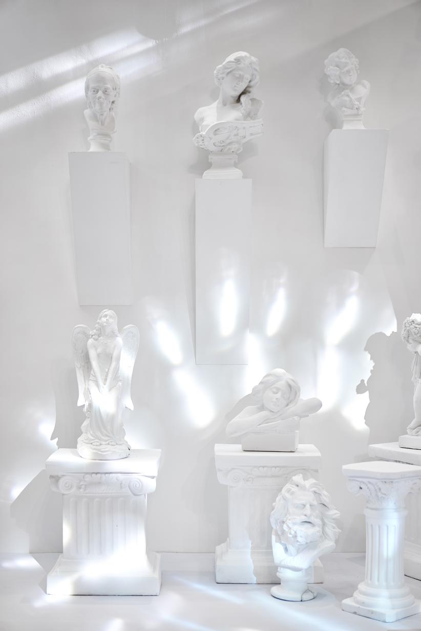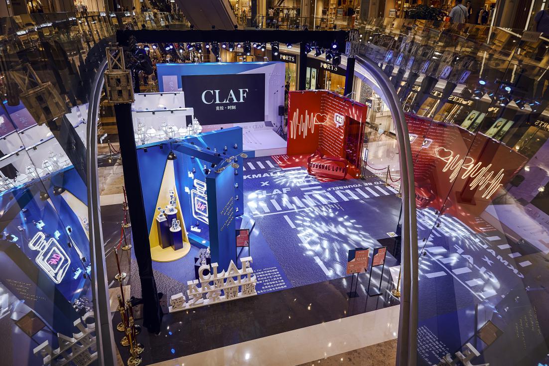 愛(ài)之全體驗(yàn)靜態(tài)藝術(shù)展分為四個(gè)區(qū)域,分別對(duì)應(yīng) C-L-A-F(克拉時(shí)刻的英文),C對(duì)應(yīng)白色區(qū)域,代表 C lassic(經(jīng)典 ),在“C lassic”的區(qū)域中,洛杉磯郡藝術(shù)博物館標(biāo)志地標(biāo)-燈柱( Urban Light)與文藝復(fù)興的石膏像相結(jié)合,打造一片純凈又不失時(shí)尚的打卡區(qū)域。L對(duì)應(yīng)紅色區(qū)域,代表Love(愛(ài)),設(shè)計(jì)了以“心電感應(yīng)”的一堵墻面,描繪遇到“愛(ài)情”的場(chǎng)景,從“正常”的心電圖到遇見(jiàn)“愛(ài)”的怦怦心跳,純紅色的背景是打卡拍照的最佳地點(diǎn)。 A對(duì)應(yīng)藍(lán)色區(qū)域,代表Aftertaste(回味),整體背景運(yùn)用國(guó)際克萊因藍(lán),形成撞色的沖擊感。利用香水瓶,打造了一個(gè)藍(lán)色的“氣味收藏室”。F對(duì)應(yīng)黑色區(qū)域,代表Forever(永恒),運(yùn)用霓虹燈管打造神秘時(shí)尚的氛圍,就像鉆石一樣在黑暗中閃爍,黑色背景成為許多人打卡點(diǎn),仿佛電影橋段般的文字設(shè)計(jì),非常適合還原電影場(chǎng)景。