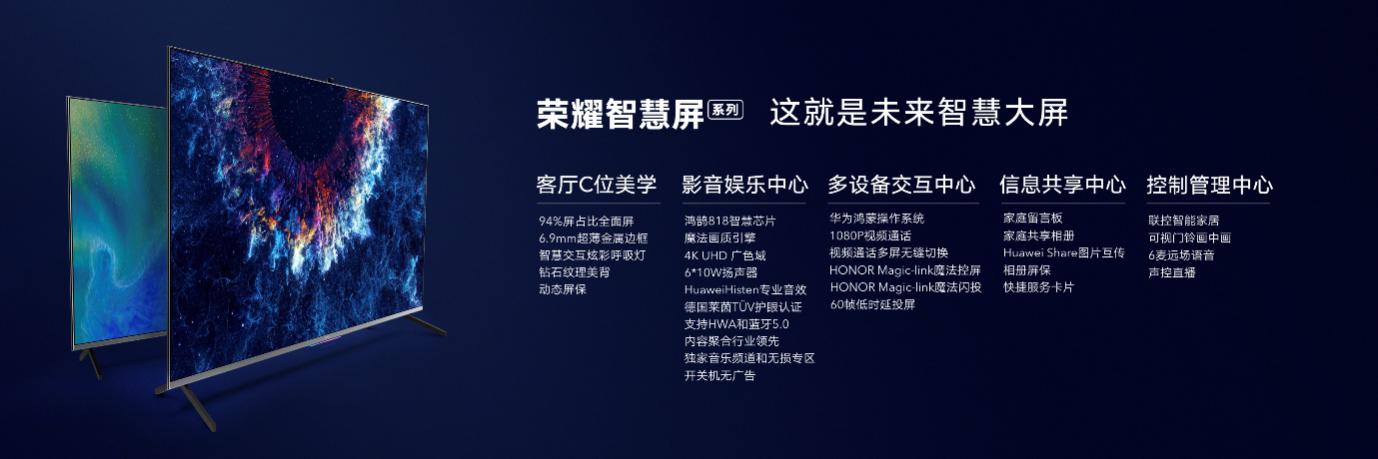 作為全新品類的第一款產(chǎn)品,榮耀智慧屏系列不僅采用華為全新發(fā)布的分布式操作系統(tǒng)華為鴻蒙操作系統(tǒng),還搭載鴻鵠818智慧芯片等三顆華為自研芯片,具備協(xié)同智慧能力;內(nèi)置升降式AI攝像頭,首創(chuàng)系統(tǒng)級(jí)視頻通話功能;開創(chuàng)了大屏和手機(jī)的交互新方式,能實(shí)現(xiàn)魔法閃投、魔法控屏等功能;它還可以聯(lián)控智能家居,創(chuàng)新打造“我家”生活空間,通過智慧屏全局操控。這些創(chuàng)新的技術(shù),讓榮耀智慧屏擁有了全面超越傳統(tǒng)電視的體驗(yàn)。