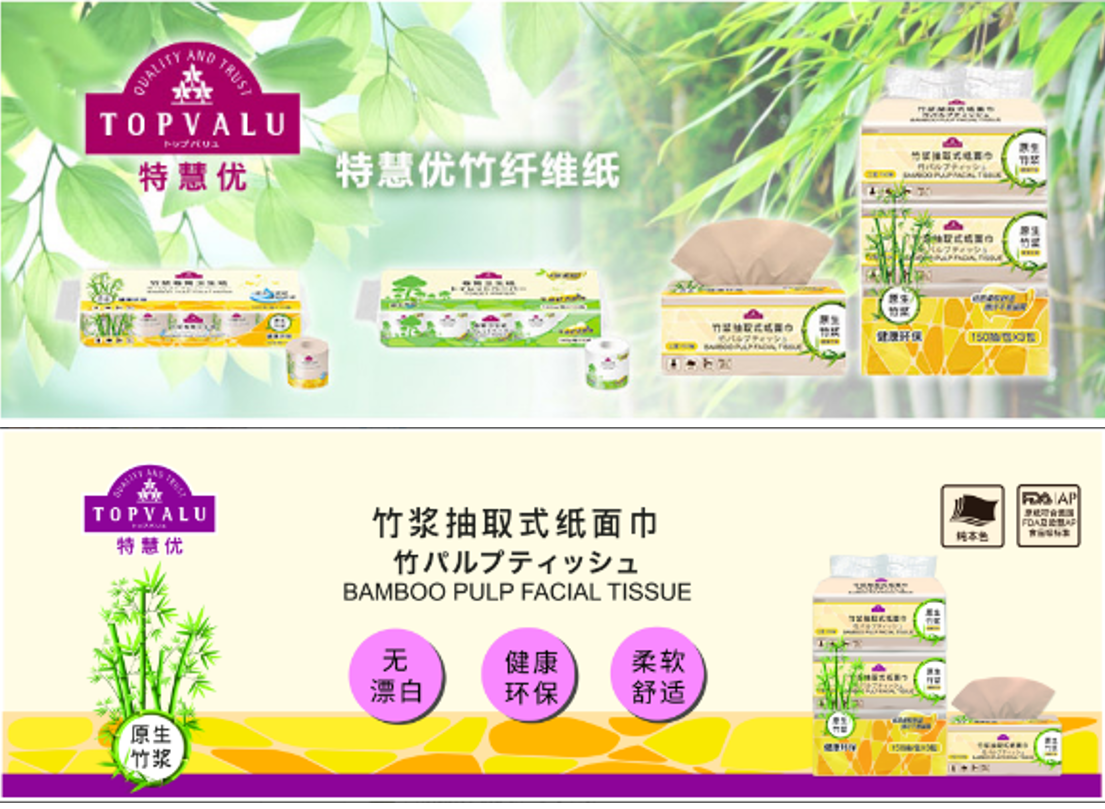 永旺始終對環(huán)境保護(hù)高度關(guān)注,開發(fā)健康、環(huán)保的、讓顧客放心使用的商品一直是永旺的目標(biāo)。正是出于這樣的考量,永旺自有品牌TOPVALU(特慧優(yōu))推出了竹漿抽取式紙面巾等系列的環(huán)境友好型商品。由于該商品做到了對環(huán)境無污染,對人體無危害,還獲得了“2018年中國零售自有品牌評選”的“綠色產(chǎn)品獎”。