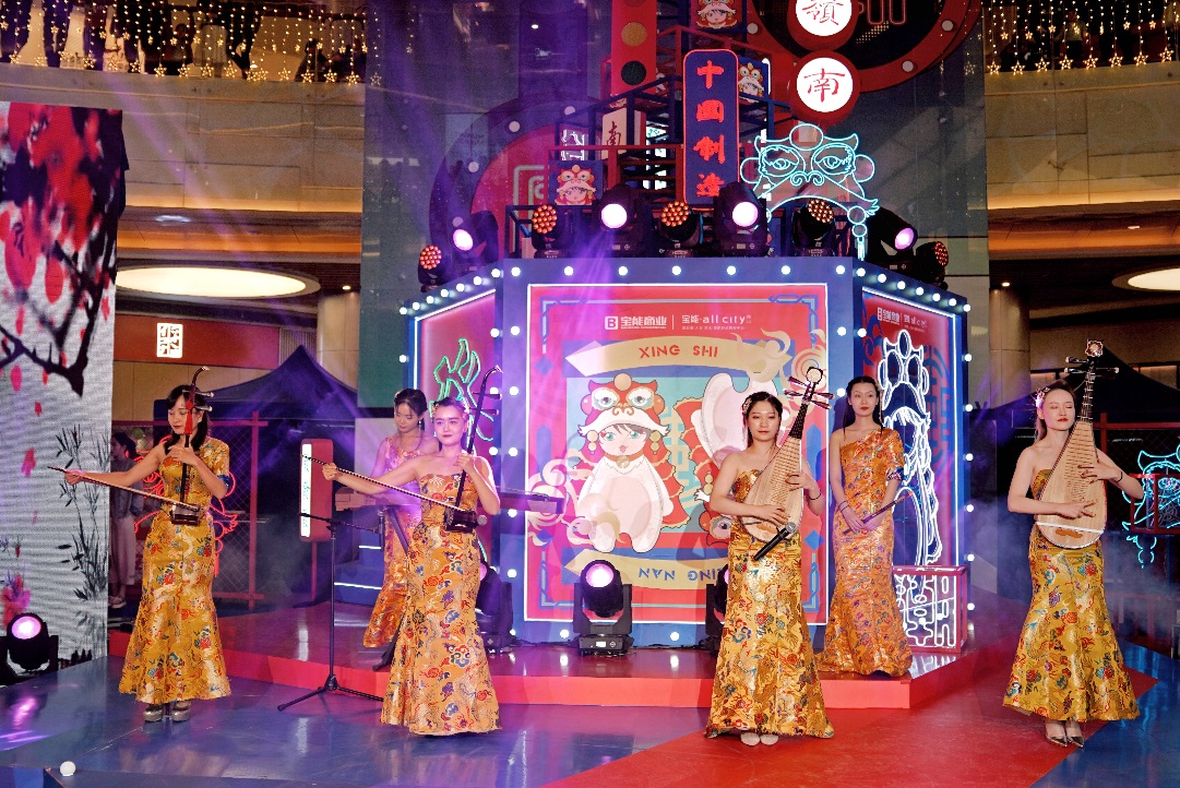 慶典當(dāng)天,豐富多彩的異業(yè)活動(dòng)貫穿全場(chǎng),紅包雨搖一搖的現(xiàn)場(chǎng)互動(dòng)小游戲?yàn)閼c典帶來(lái)了一波又一波歡呼;街舞串燒、國(guó)潮T臺(tái)大秀、樂(lè)隊(duì)演奏、漢服快閃秀、近景魔術(shù)等精彩表演更是將現(xiàn)場(chǎng)氣氛不斷推向高潮。作為今年周年慶的主打形象,“國(guó)潮 IP”——南獅霸氣亮相,呆萌與喜慶的形象一出場(chǎng)便引爆現(xiàn)場(chǎng),成為全場(chǎng)焦點(diǎn)。富有中國(guó)傳統(tǒng)文化內(nèi)涵的南獅與西方潮流電音的巧妙結(jié)合,碰撞出新穎而奇妙的火花,也讓在場(chǎng)觀眾體驗(yàn)到了一場(chǎng)耳目一新的視聽(tīng)盛宴。