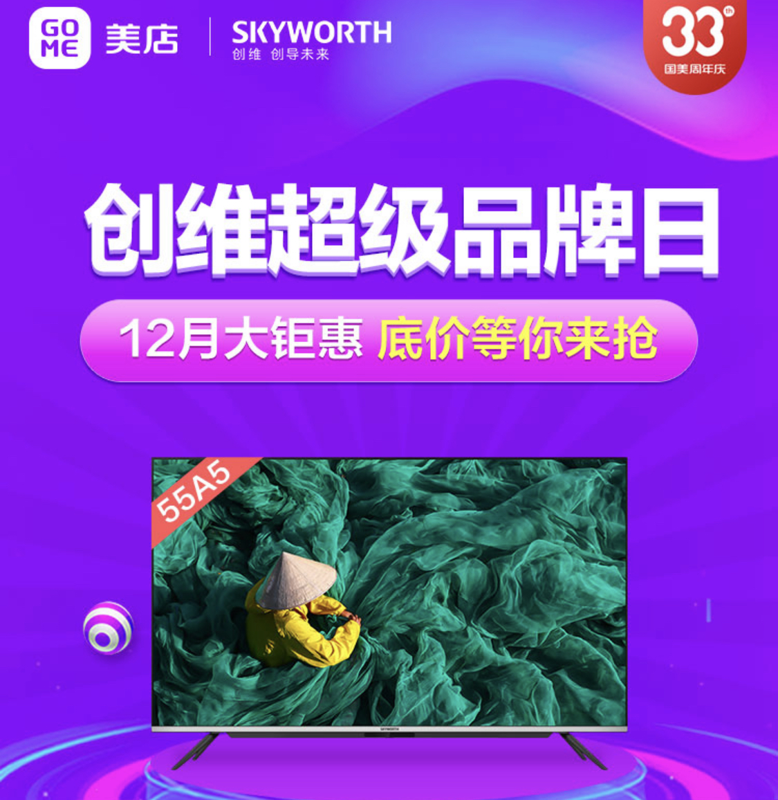 國(guó)美33周年慶期間,創(chuàng)維超級(jí)品牌日也在國(guó)美美店同步開(kāi)啟,相比于其他品牌,創(chuàng)維電視沒(méi)有那么多活動(dòng),僅僅采用了價(jià)格直降的方式,簡(jiǎn)單粗暴,直接購(gòu)買(mǎi)即可。