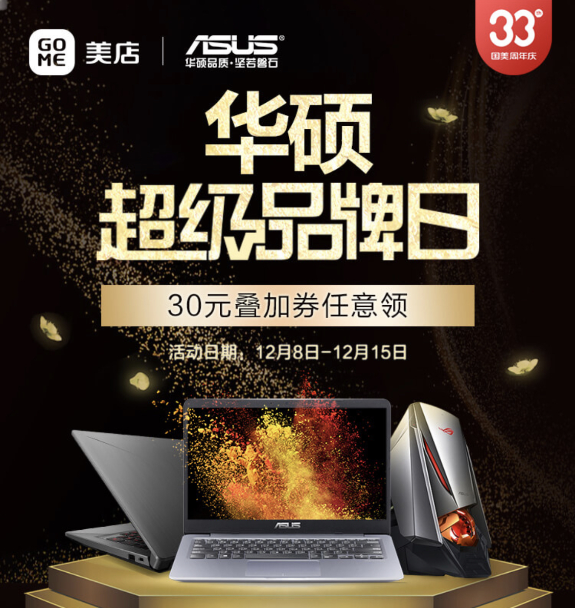 國(guó)美33周年華碩超級(jí)品牌日,游戲、辦公、輕薄顏值筆記本電腦應(yīng)有盡有,全場(chǎng)產(chǎn)品可領(lǐng)30元無(wú)門(mén)檻可疊加優(yōu)惠券,相當(dāng)于在原有優(yōu)惠基礎(chǔ)上再降30元。