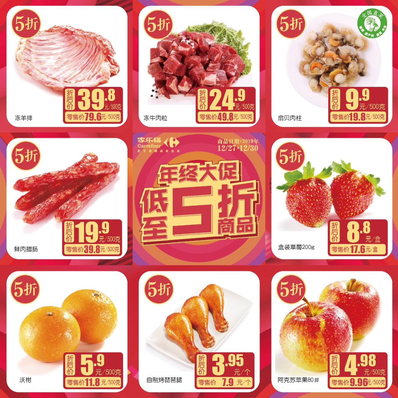5折生鮮篇:凍羊排、凍牛肉粒、扇貝肉柱折、鮮肉臘腸、自制烤琵琶腿,家樂福已備足貨,就等“肉食動物”們來挑選;香甜草莓、滿汁沃柑、脆爽阿克蘇蘋果,健康水果少不了。這一回,家樂福要承包你的冬日大胃口,讓你的生活有滋有味!