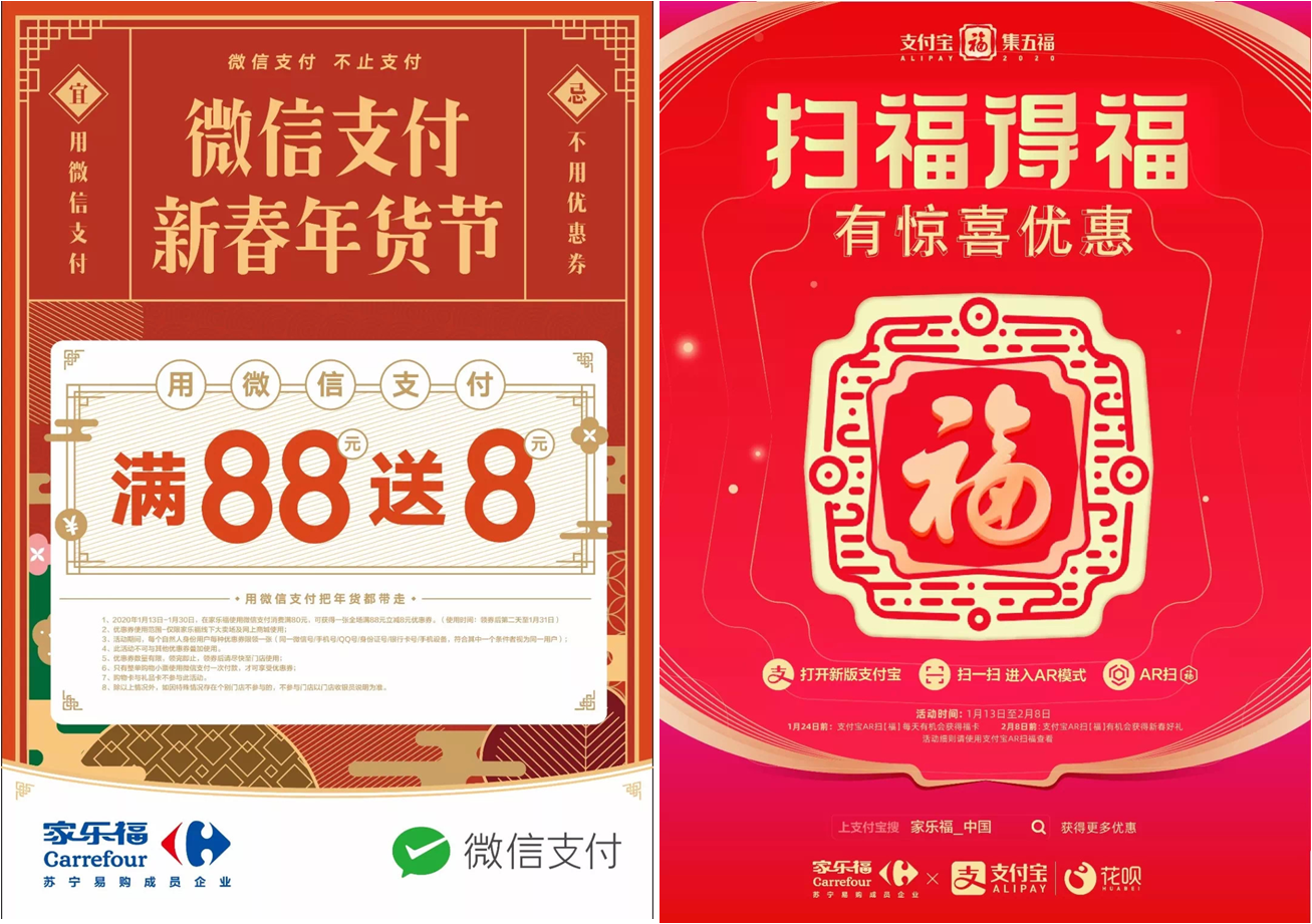 除此之外,各大支付平臺(tái)優(yōu)惠券亦開始發(fā)放,助力您的年貨采買。前方高能預(yù)警!1月13日至2月8日,顧客使用支付寶掃上圖“?!弊忠约皡⑴c集五?;顒?dòng),即有機(jī)會(huì)獲得家樂福全場(chǎng)滿200減10優(yōu)惠券。1月13日至1月30日,在家樂福使用微信支付消費(fèi)滿80元,可獲得一張全場(chǎng)滿88元立減8元優(yōu)惠券,