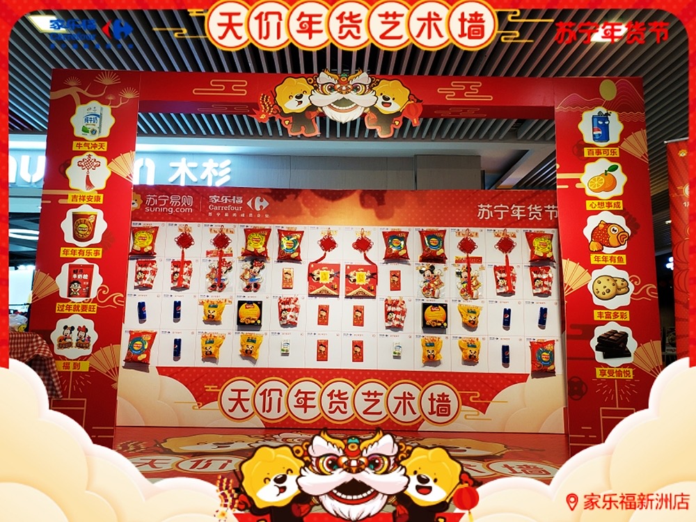 天價(jià)年貨藝術(shù)墻,藝術(shù)年貨送不停 ! 1月17日 至 1月 19 日 , 家樂福華南區(qū)廣州員村店、珠海吉大店、福州寶龍店 、廈門中華城店及 深圳新洲店 (活動時間為1.16-1.18) 活動繼續(xù) 。 禮品數(shù)量有限,每天送完即止 !蘇寧家樂福 實(shí)力助你過年味滿滿的春節(jié) ,邀請您 來把年貨驚喜領(lǐng)回家 !