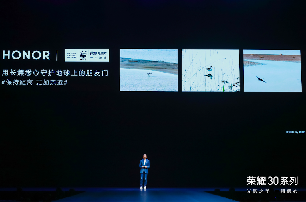 見圳客戶端 ·深圳新聞網2020年4月15日訊 今天,在榮耀30系列新品發(fā)布會暨2020榮耀春夏秀現(xiàn)場,榮耀宣布與世界自然基金會(WWF),一個地球自然基金會(OPF)建立戰(zhàn)略伙伴關系,秉持“保持距離更加親近”的理念,共同倡議與自然和諧共生、守護野生動植物的自然棲息,用影像表達喜愛,用長焦紀錄地球生物多樣性。