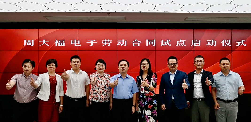 見圳客戶端·深圳新聞網(wǎng)2020年7月29日訊(記者蔡凱伊) 今日,國家首家試點(diǎn)工作——“周大福電子勞動(dòng)合同試點(diǎn)項(xiàng)目”項(xiàng)目啟動(dòng)會(huì)于深圳鹽田周大福集團(tuán)大廈舉行。在政府主管部門、深圳法大大網(wǎng)絡(luò)科技有限公司 、商業(yè)合作伙伴等各界人士的共同見證下,“創(chuàng)新勞動(dòng)合同管理機(jī)制”的唯一入選項(xiàng)目,正式于周大福實(shí)行首家試點(diǎn)。