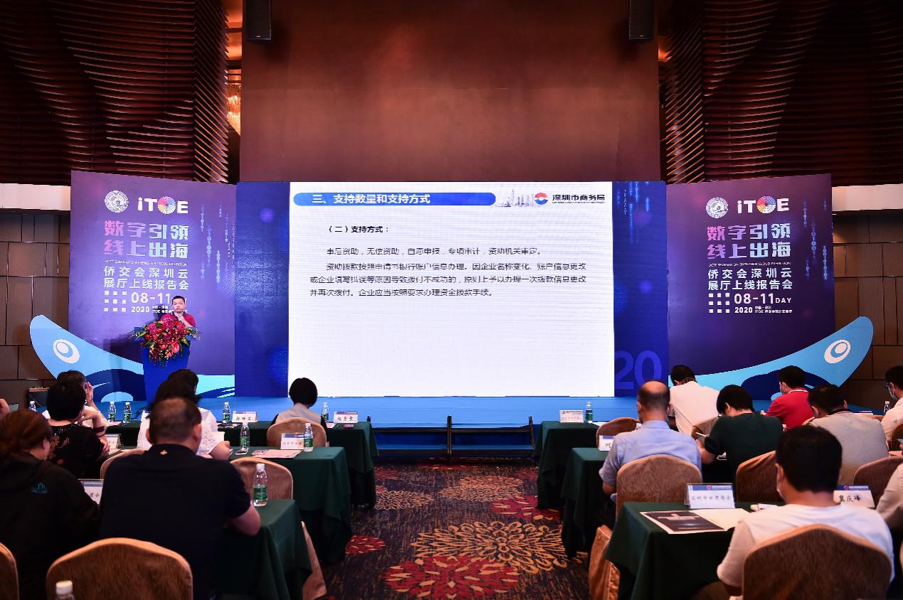 見圳客戶端·深圳新聞網2020年8月12日訊(記者 張俊達)昨天,“數字引領?線上出?!眱S交會深圳云展廳上線報告會在深圳綠景酒店三樓會議廳成功召開。以"數字引領?線上出海,提升企業(yè)國際競爭力"為主題,本次報告會重點展示“ITOE僑交會深圳云展廳”創(chuàng)新會展模式、解讀疫情之下外貿中小企業(yè)如何通過數字化轉型,并帶來2020年度最新中央外經貿發(fā)展專項資金政策宣講。深圳多個商會、行業(yè)協會,以及僑企、港企、深圳外向型企業(yè)、展覽公司近200名代表參加報告會。