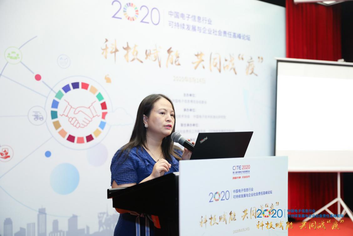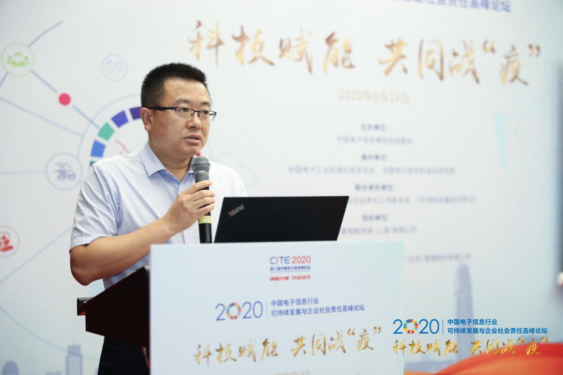 工業(yè)和信息化部產(chǎn)業(yè)政策與法規(guī)司綜合處處長徐華在致辭中表示:面對新型冠狀病毒肺炎疫情的洶涌來襲,電子信息行業(yè)企業(yè)積極承擔(dān)社會責(zé)任,構(gòu)筑起了戰(zhàn)“疫”堅(jiān)固防線,充分發(fā)揮自身專業(yè)優(yōu)勢,運(yùn)用信息技術(shù)能力,為抗擊疫情、復(fù)工復(fù)產(chǎn)做出了積極貢獻(xiàn)。產(chǎn)業(yè)政策與法規(guī)司作為工業(yè)和信息化部負(fù)責(zé)推動企業(yè)社會責(zé)任建設(shè)的主管司局,為深入貫徹落實(shí)黨中央國務(wù)院關(guān)于企業(yè)社會責(zé)任工作的要求,進(jìn)一步加強(qiáng)新時代工業(yè)通訊業(yè)企業(yè)社會責(zé)任的建設(shè),2020年,我們積極推進(jìn)《關(guān)于推動工業(yè)通信業(yè)企業(yè)社會責(zé)任指導(dǎo)意見》的研究與出臺,探索建立企業(yè)社會責(zé)任意識和能力提升機(jī)制,推動企業(yè)社會責(zé)任培訓(xùn)和宣傳交流工作。同時,通過搭建企業(yè)社會責(zé)任公共服務(wù)平臺,為宣傳企業(yè)社會責(zé)任政策和為企業(yè)開展社會責(zé)任信息披露及溝通交流提供服務(wù)。