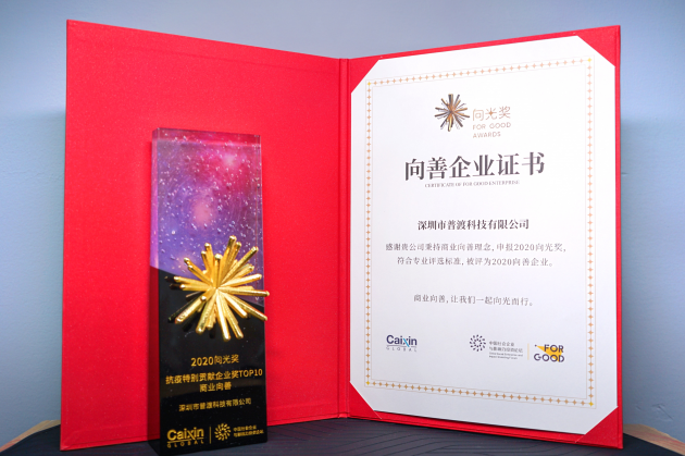 其中,普渡科技因其“技術抗疫”支援行動在疫情中的突出貢獻,歷經(jīng)3個多月的時間,經(jīng)過背景調查初審、線上材料評審、線上路演評審及終審等環(huán)節(jié),最終榮獲“2020向光獎·抗疫特別貢獻企業(yè)獎商業(yè)向善TOP10”。