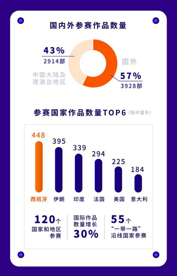 自今年9月中旬全球短片征集啟動(dòng)以來,本屆短片節(jié)獲得來自世界各地創(chuàng)作者的積極響應(yīng),盡管受到新冠疫情影響以及遭遇影視產(chǎn)業(yè)寒冬,但本屆短片節(jié)參賽作品數(shù)量卻逆勢而上,并刷新歷史新高。而且,在今年的6842部參賽作品中,國際參賽作品多達(dá)3928部,數(shù)量較去年增長30%,占作品總量的57%。在今年參賽的120個(gè)國家和地區(qū)中,作品數(shù)量位居前六名的國家分別是西班牙(448部)、伊朗(395部)、印度(339部)、法國(294部)、美國(225部)和意大利(184部)。值得一提的是,作為深圳市參與“一帶一路”建設(shè)重點(diǎn)項(xiàng)目,短片節(jié)今年吸引了來自“一帶一路”沿線的55個(gè)國家參賽,約占目前65個(gè)“一帶一路”沿線國家數(shù)的85%,短片節(jié)作為推動(dòng)“一帶一路”沿線國家間人文交流、促進(jìn)全球跨文化傳播的重要平臺(tái)的作用日益凸顯,國際化進(jìn)一步走向深入。