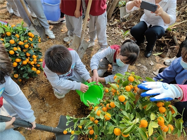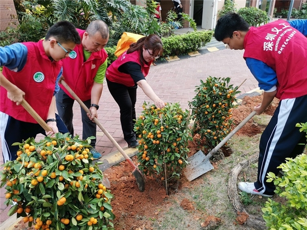 雍景城小區(qū)作為本次活動(dòng)的主會(huì)場(chǎng),現(xiàn)場(chǎng)熱鬧非凡。公明街道相關(guān)工作人員向光明區(qū)實(shí)驗(yàn)學(xué)校師生、志愿者、物業(yè)等講解年花年桔回植活動(dòng)的意義及安全事項(xiàng),并分成三組開始種植活動(dòng),大家你扶綠植我培土,你摘果桔我澆水,揮灑辛勤的汗水,很快,70多棵年桔就“立”起來(lái)了,枝干上掛滿了種植人員留下的真切的寄語(yǔ)。東明公寓、傳麒山小區(qū)的種植現(xiàn)場(chǎng)同樣溫馨而快樂(lè)。