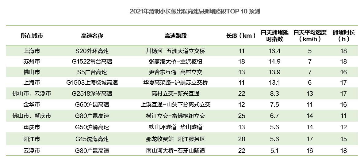 全國(guó)高速擁堵預(yù)測(cè):4月3日為出程高峰,4月5日為返程高峰