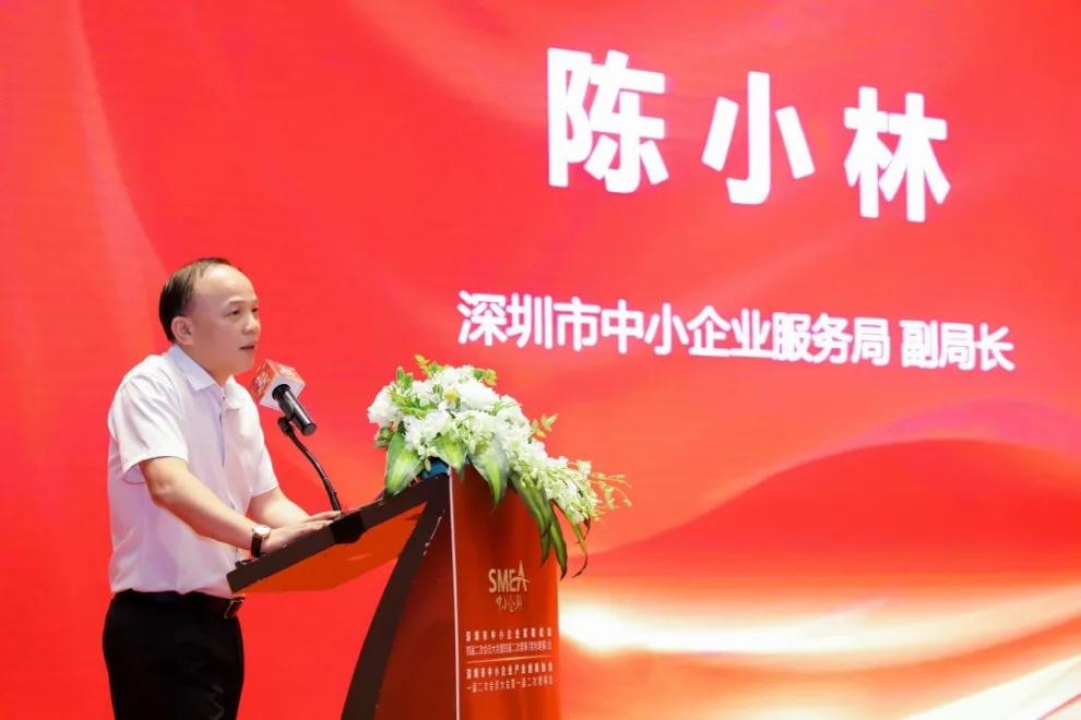深圳市中小企業(yè)服務(wù)局副局長(zhǎng)陳小林(左六)、