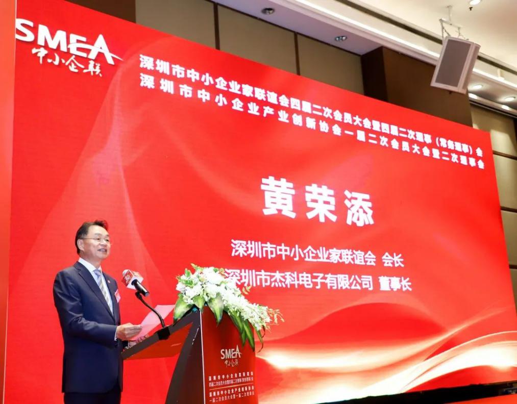 深圳市中小企業(yè)家聯(lián)誼會(huì)會(huì)長(zhǎng)、深圳市杰科電子有限公司董事長(zhǎng)黃榮添在致辭中首先對(duì)長(zhǎng)期以來(lái)給予協(xié)會(huì)支持的各級(jí)領(lǐng)導(dǎo)、會(huì)員們表示衷心的感謝。深圳市中小企業(yè)家聯(lián)誼會(huì)自2010年9月20日成立以來(lái),在市各級(jí)領(lǐng)導(dǎo)的指導(dǎo)和關(guān)懷下,已走過(guò)十年的歲月。深圳中小企聯(lián)感恩領(lǐng)導(dǎo)們的幫助與指導(dǎo),也感恩全體會(huì)員的信任與支持!黃會(huì)長(zhǎng)表示:深圳中小企聯(lián)要緊跟時(shí)代步伐,認(rèn)清當(dāng)前形勢(shì)與任務(wù)并對(duì)協(xié)會(huì)工作提出以下幾方面要求:第一、找準(zhǔn)定位,正確履行協(xié)會(huì)職能。第二、充分發(fā)揮政企溝通的橋梁紐帶作用。第三、加強(qiáng)內(nèi)外資源有效聯(lián)接,擴(kuò)大中小企聯(lián)平臺(tái)影響力。