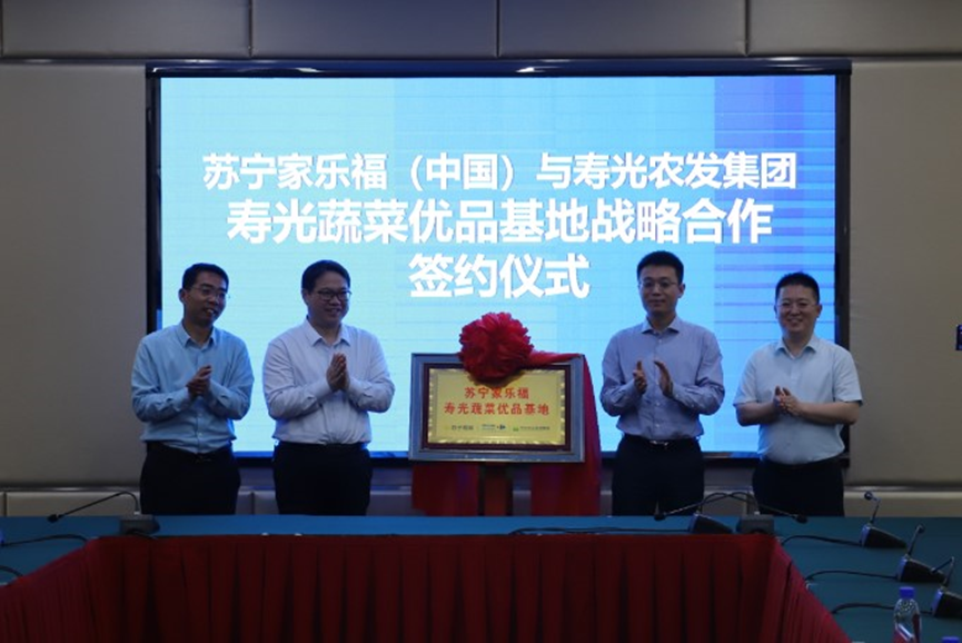(圖:蘇寧家樂福壽光蔬菜優(yōu)品基地戰(zhàn)略合作簽約儀式)