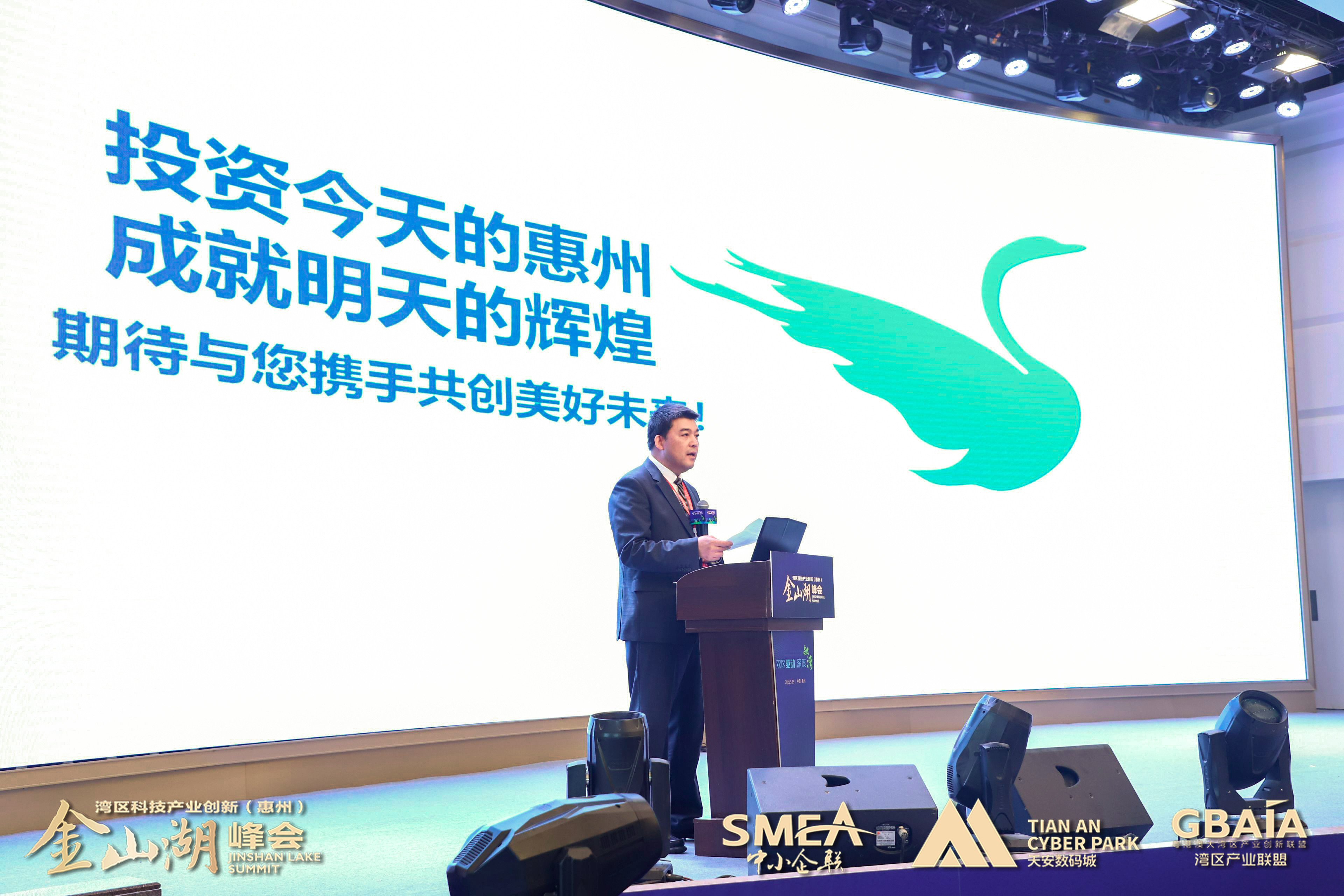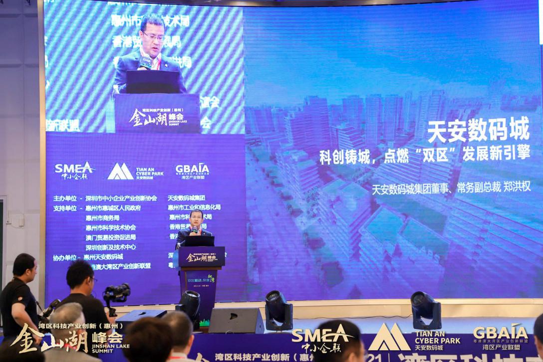 “‘雙區(qū)’建設(shè)是國家領(lǐng)導(dǎo)人和黨中央部署的重大國家戰(zhàn)略,作為粵港澳大灣區(qū)重要節(jié)點和深圳都市圈重要成員,全力支持、積極融入既是惠州鮮明的政治態(tài)度,也是惠州發(fā)展的必然抉擇。相信在惠州市及各級政府部門支持下,深圳市中小企業(yè)產(chǎn)業(yè)創(chuàng)新協(xié)會、天安數(shù)碼城集團強強攜手,與各方合作伙伴共同努力,通過每年一屆的“灣區(qū)產(chǎn)業(yè)創(chuàng)新(惠州)金山湖峰會”深入落實創(chuàng)新驅(qū)動發(fā)展戰(zhàn)略,匯聚粵港澳大灣區(qū)產(chǎn)業(yè)創(chuàng)新資源,深化粵港澳創(chuàng)新合作,助力惠州與灣區(qū)城市間的產(chǎn)業(yè)創(chuàng)新與協(xié)同發(fā)展。