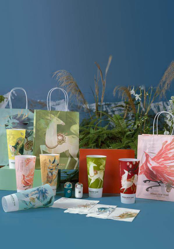 對于品牌×明星的聯(lián)名來說,調性契合是聯(lián)名活動不可或缺的"出圈基因"。而奈雪的茶霸氣玉油柑與樂隊五條人,看似來自不同次元,實則都有大膽、堅持、向上、樂觀的底色,而非將不搭嘎的兩個品牌生硬地“拉郎配”。奈雪還圍繞聯(lián)名別出心裁地推出了五條人主題的立牌、貼紙和堆頭,甚至將五條人標志性的“紅色塑料袋”做成了極具個性且生物可降解的奈雪打包袋,可謂細節(jié)之處見真章。