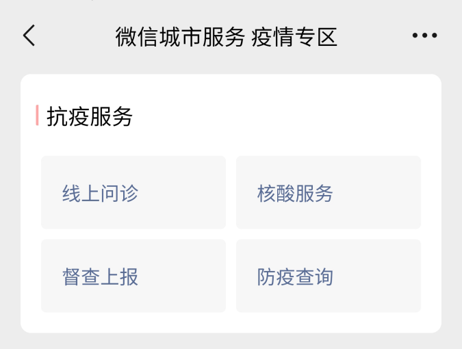 針對廣州近期疫情,微信城市服務(wù)疫情專區(qū)搭建了抗疫服務(wù)專區(qū),為廣州市民們提供三甲醫(yī)院線上問診、核酸服務(wù)、督查上報、防疫查詢等多項疫情相關(guān)服務(wù),助力同心抗疫,共筑防線。