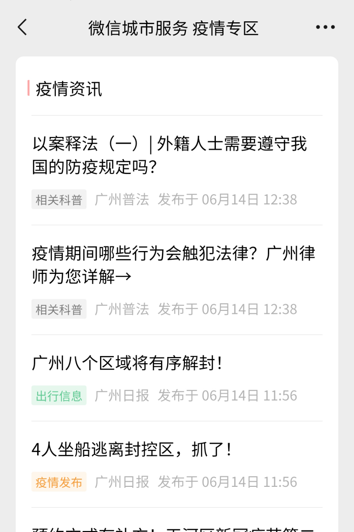 疫情資訊也加入新版專區(qū),專門為廣州市民提供官方權(quán)威的疫情資訊,方便群眾了解所在區(qū)域疫情最新動態(tài)及政策解讀信息。