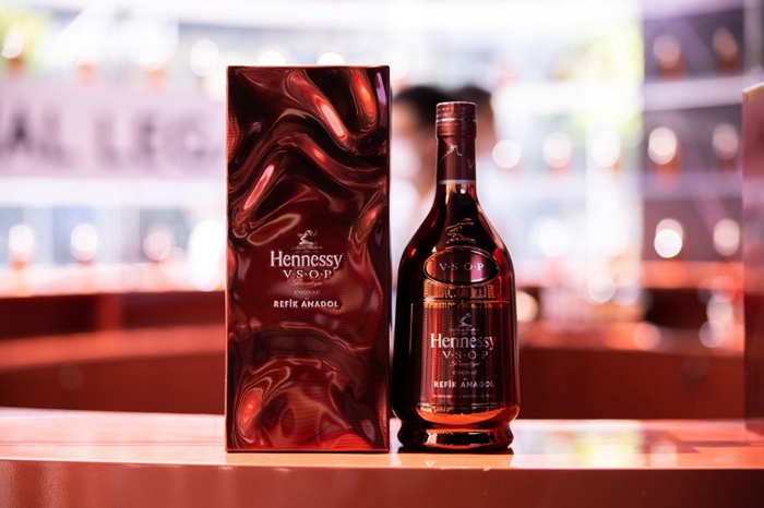 通過展示著軒尼詩V.S.O.P雷菲克·安納多爾特別版禮盒的“邑想酒廊”,來到“邑想密室”,藝術(shù)家特別打造的大型沉浸式視聽裝置《Sense of Heritage》在此震撼呈現(xiàn)。這個充滿未來感的“無限空間”,用于投影其在干邑區(qū)所收集的數(shù)據(jù)圖像。置身其中,幻變的色彩、形狀、浮雕、紋理,令軒尼詩品鑒委員會專家的各種情感可視可觸可感,足以打通感官鏈路,引人“邑”想天開。