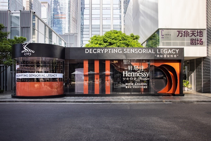 在城中潮人往來聚集的深圳萬象天地·藝文廣場,軒尼詩“邑”想空間憑借頗具神秘感的外觀,吸引了路人的好奇與關(guān)注。整體設(shè)計理念,源于國際知名媒介藝術(shù)家兼導(dǎo)演雷菲克·安納多爾的一次先鋒藝術(shù)創(chuàng)作,通過神經(jīng)科學(xué)研究方法,顛覆性詮釋軒尼詩悠久精湛的釀造技藝。