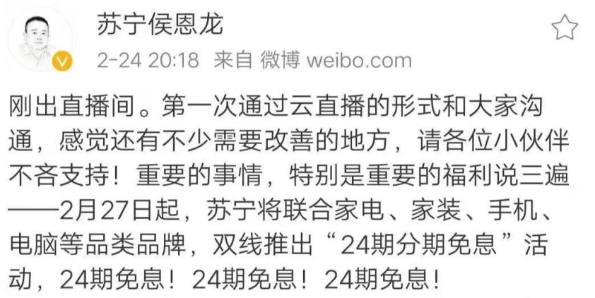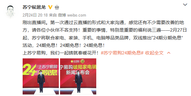 2月27日0點(diǎn),蘇寧易購家電、家裝、3C等品類,開啟24期分期免息活動。截至12時,銷售額同比增長達(dá)710%。